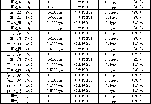 響應(yīng)時間:T90≤20秒恢復(fù)時間:≤30秒