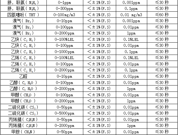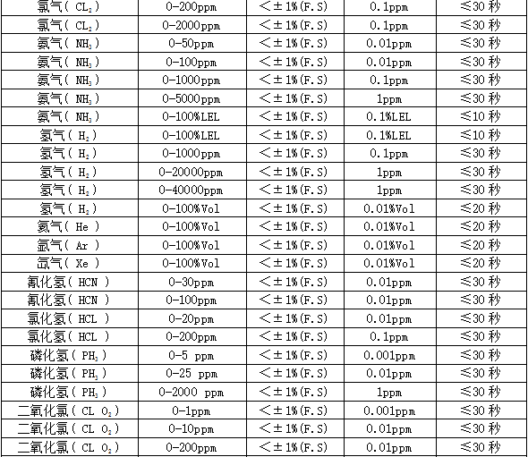 檢測范圍:0~1、10、100、1000、5000、50000、100000ppm、200毫克/升、100%LEL、20%、50%、99.999%、100%Vol可選,其他量程可訂制。