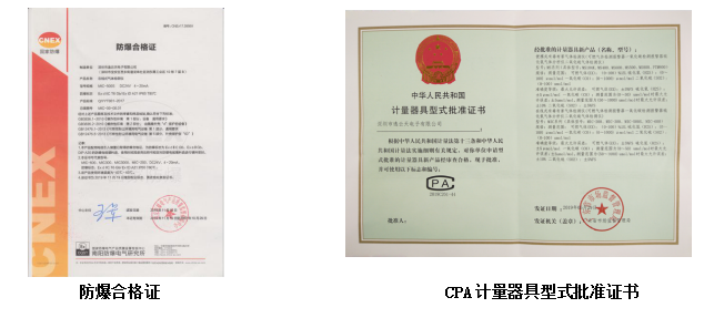 ·符合最新國標并取得CPA計量器具型式批準證書、防爆認證等資質(zhì)