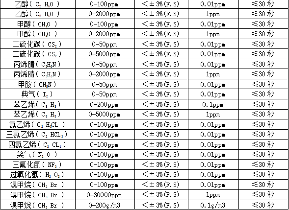 檢測(cè)范圍:0~1、10、100、1000、5000、50000、100000ppm、100%LEL、20%、50%、100%Vol可選,其他量程可訂制。