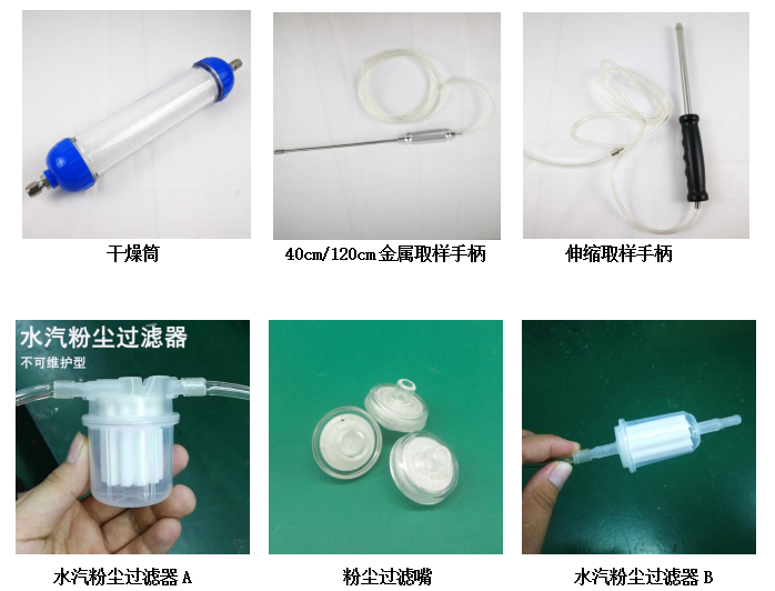 選配項(xiàng):溫濕度測(cè)量功能、1.2 m 可伸縮采樣手柄(1-10米軟管,標(biāo)準(zhǔn)長(zhǎng)度1米)、0.4米不銹鋼采樣手柄(帶粉塵過(guò)濾器,不可伸縮)、高溫采樣降溫過(guò)濾手柄、高溫高濕預(yù)處理系統(tǒng)、濕度粉塵過(guò)濾器多個(gè)、掛繩、光盤(pán)(上位機(jī)通訊軟件)