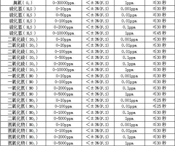 檢測(cè)氣體:有毒氣體、氧氣、二氧化碳、易燃易爆類氣體、TVOC等,1~4種氣體隨意組合;選配:溫濕度測(cè)量。 (常見(jiàn)氣體種類及量程列表見(jiàn)結(jié)尾處)