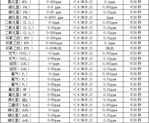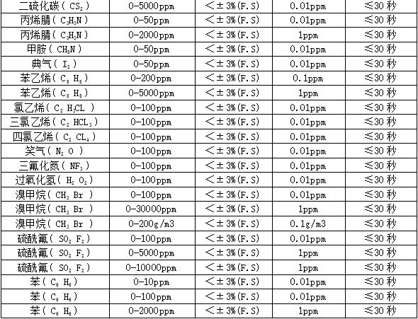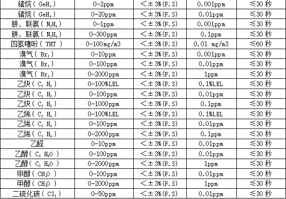 檢測(cè)范圍:0~1、10、100、1000、5000、50000、100000ppm、200毫克/升、100%LEL、20%、50%、100%Vol可選,其他量程可訂制。