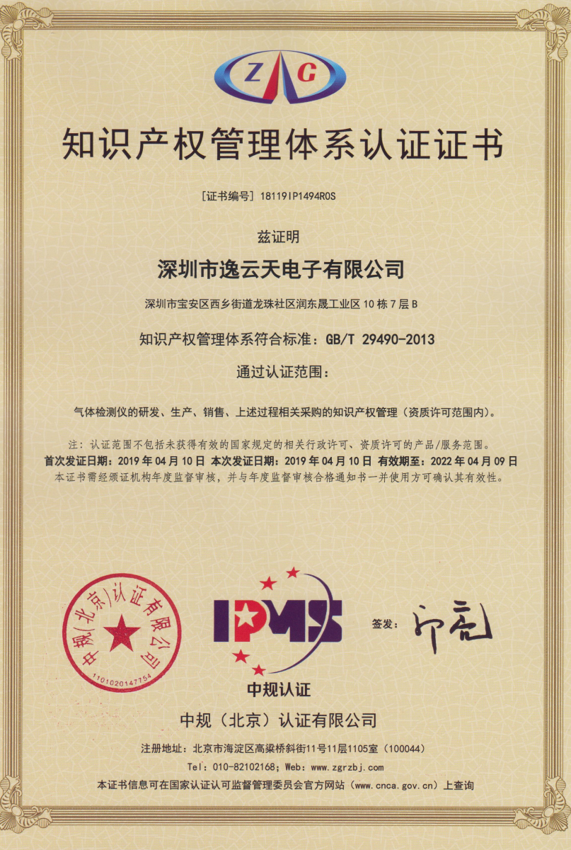 知識產(chǎn)權(quán)管理體系認證證書